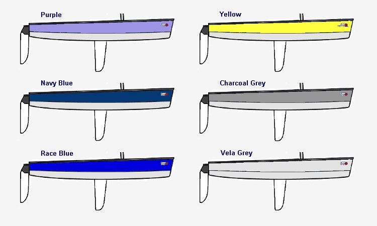 Not sure what colour your boat is? The original Laser 2000 was produced in a range of colours. The most common topsides are Purple, Navy Blue and Race Blue, but examples of Yellow, Charcoal Grey and Vela Grey (generally known as ‘White’) boats can also be found.