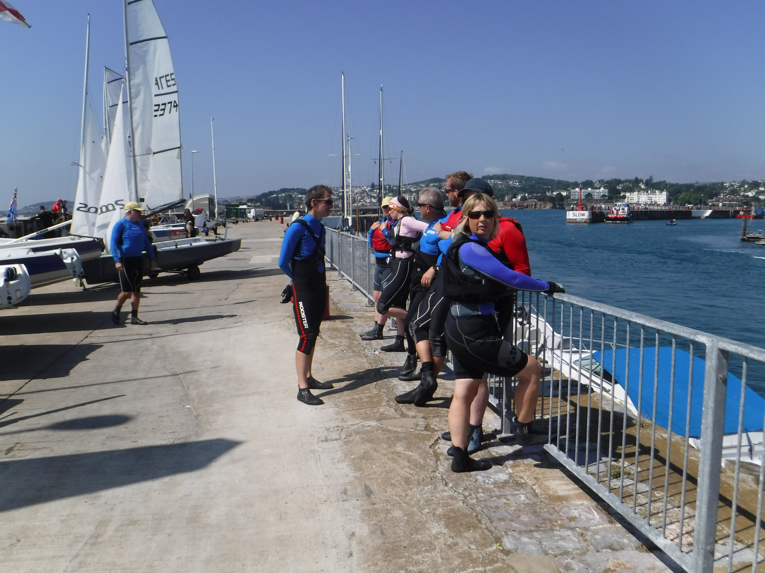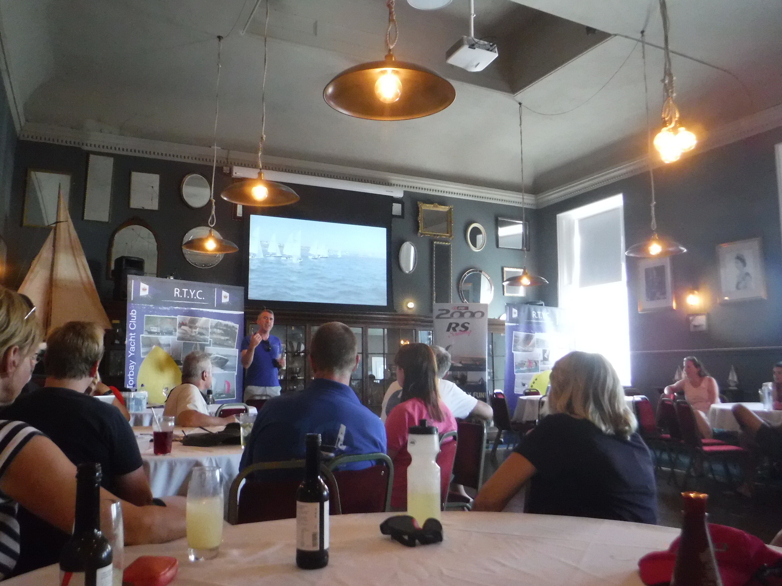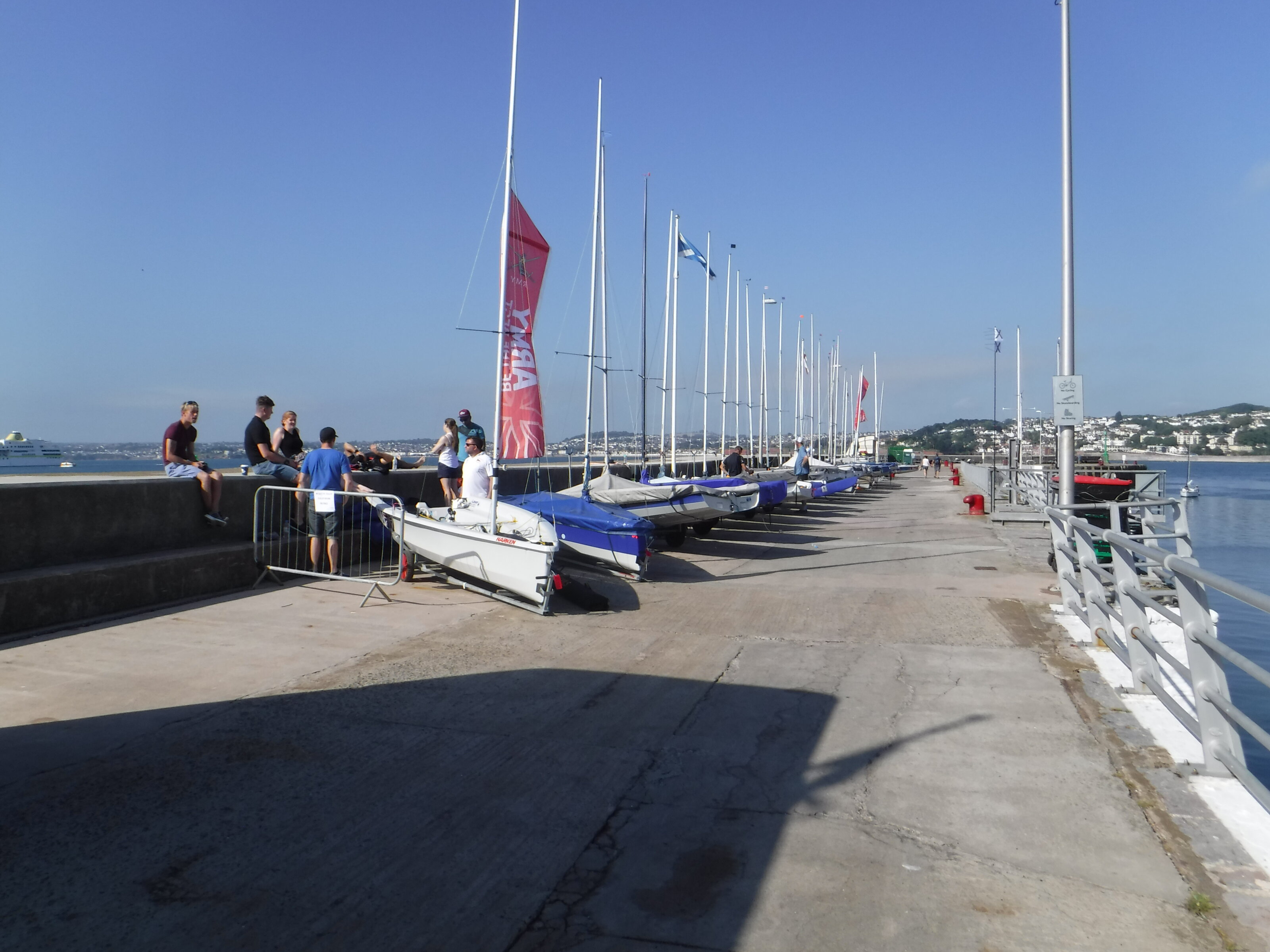 Its a fabulous venue for the Nationals. A boat park on the harbour wall. Launch from a concrete slipway into the marina. A short sail to the race area. Club a 5 minute walk from the boat park. Enjoy the RTYC ballroom, bar, dining room and garden all with fabulous Torbay views. An expert race organisation.