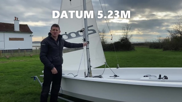 Firstly, tie the halyard to a long tape measure (it needs to longer then 7m) using the bobble method. Raise the halyard up to the top of the mast, then tension the halyard ensuring it is at the top. Now read the tape measure off at the goose neck it should read 5. 23m.